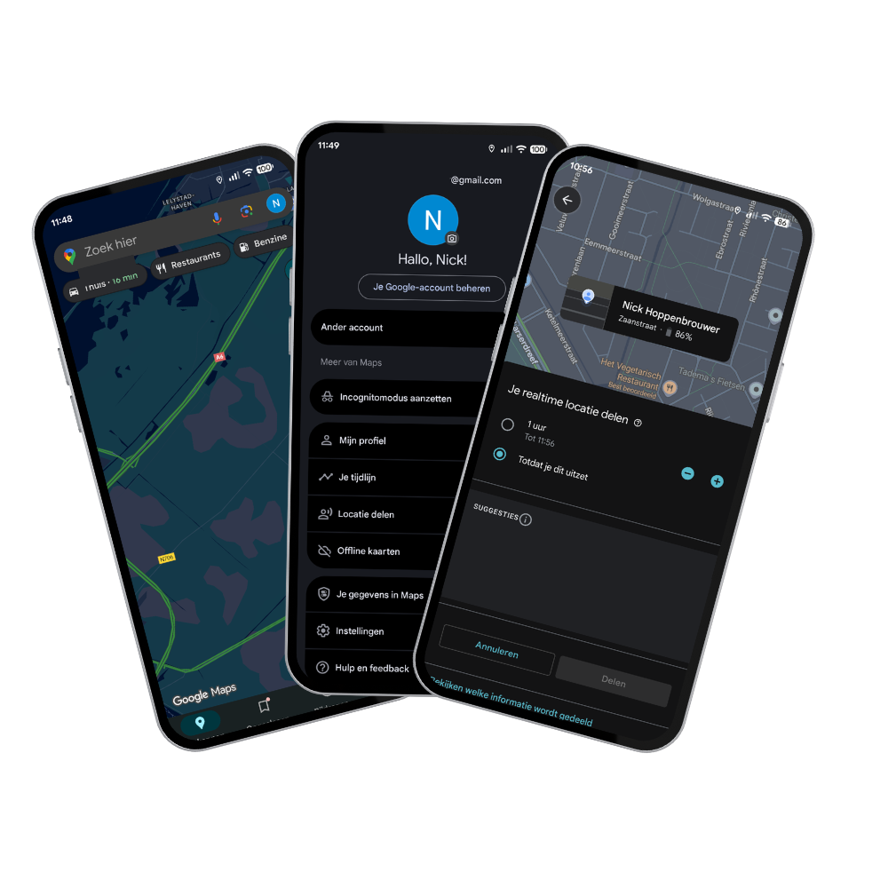 Vul hier de URL in van jouw Google Maps locatie die je met jezelf hebt gedeeld.