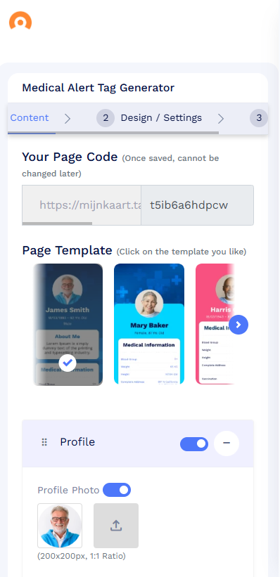 De geprogrammeerde URL verwijst nu standaard naar de pagina waarop jouw noodinformatie wordt getoond. De persoon die de kaart scant kan jouw gegevens niet aanpassen.