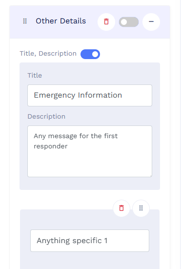 Het element Other details kan je verwijderen door het schuifknopje naar links te zetten, of op het prullenbakje te klikken wanneer je het element opent (op de + drukken).