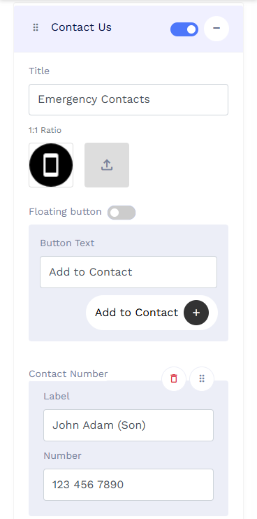 Alle overige velden in dit element kan je verwijderen door op het prullenbakje te tikken.